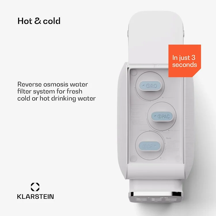 This advanced filtration system offers not only high-quality water purification, but also versatile features that optimize your daily water supply.Thanks to the 5-stage filtration system, consisting of a 2-in-1 pre-filter, a reverse osmosis membrane and a 2-in-1 post-filter, you will enjoy crystal clear and healthy water. The pre-filter removes coarse particles such as sand and rust, while the osmosis membrane stops even the smallest impurities. The post-filter ensures fresh taste and enriches the water with essential minerals.